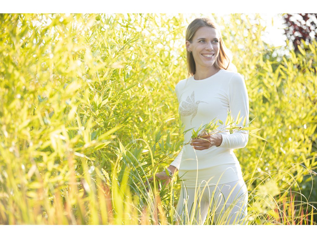 Tričko z bambusu s dlouhým rukávem v klasickém střihu s praktickým spodním lemem, který tričko udrží na správném místě i při náročnějších pozicích.